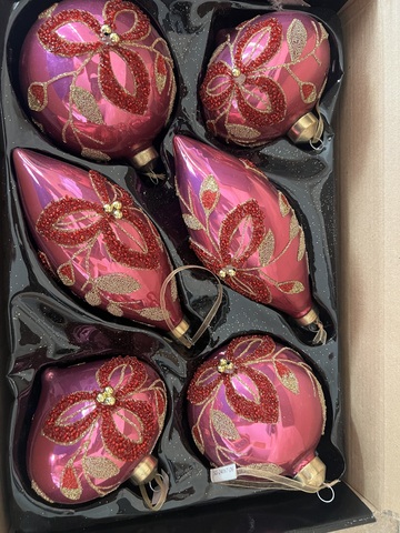 Набор стеклянных елочных украшений розового цвета с декором д.10 см, 6 штук