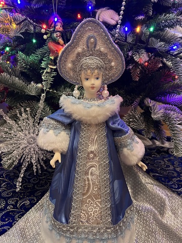 Снегурочка в синей с золотом шубке, 45 см, ручная работа