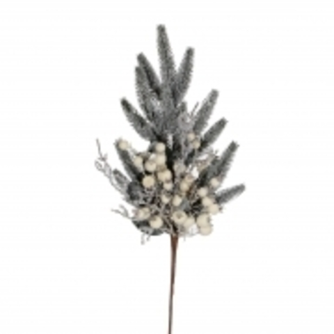 Веточка 43 см с ягодками, белая