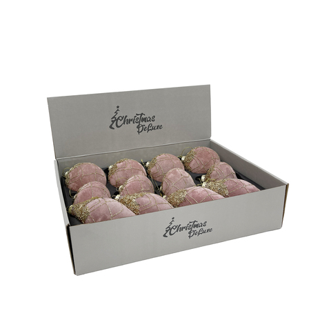 Набор стеклянных шаров пудровый с бусинками д.8 см, 12 штук, ассортимент из 3-х видов.