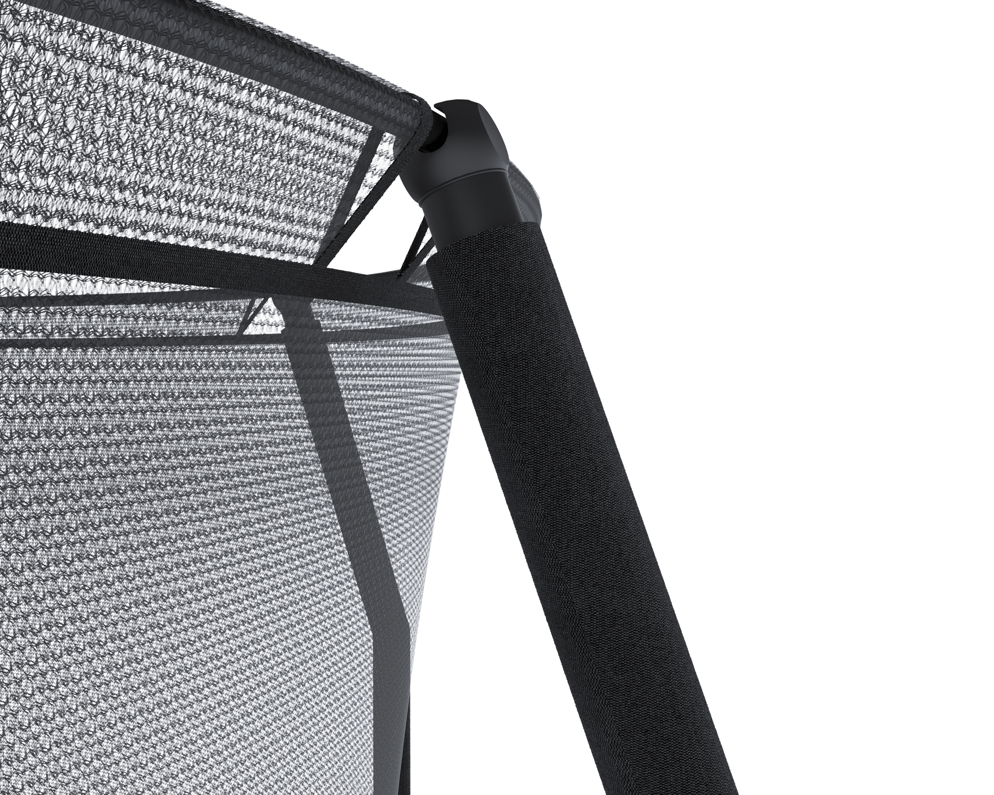 Батут Семейный Премиум 365 см (с трехступенчатой лестницей , серый, максимальная нагрузка, кг-160 кг, количество пружин, шт-72, их длина 178, кол-во витков 41, диаметр 25 мм, шт, стойки выполнены из оцинковонной стали, рукав на стойке ПВХ+поролон, высота сетки 170 см, высота батута с сеткой 259 см, высота от пола до основания 89 см. Подушка безопасности-ПВХ (голубой)+Вспененный полимер. Толщина-11мм, защитный слой-0,35мм, сетка-РЕ (черный) + молния, толщина - 90 гр/м2