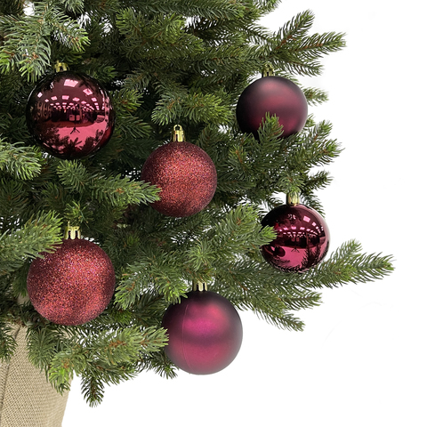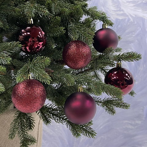 Декор новогодний, ёлочные украшения, набор пластиковых шаров 30 штук диаметр 6 см, бордовый, прозрачный короб.