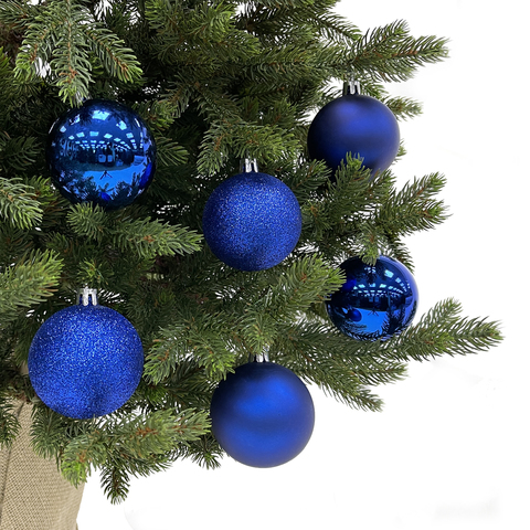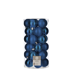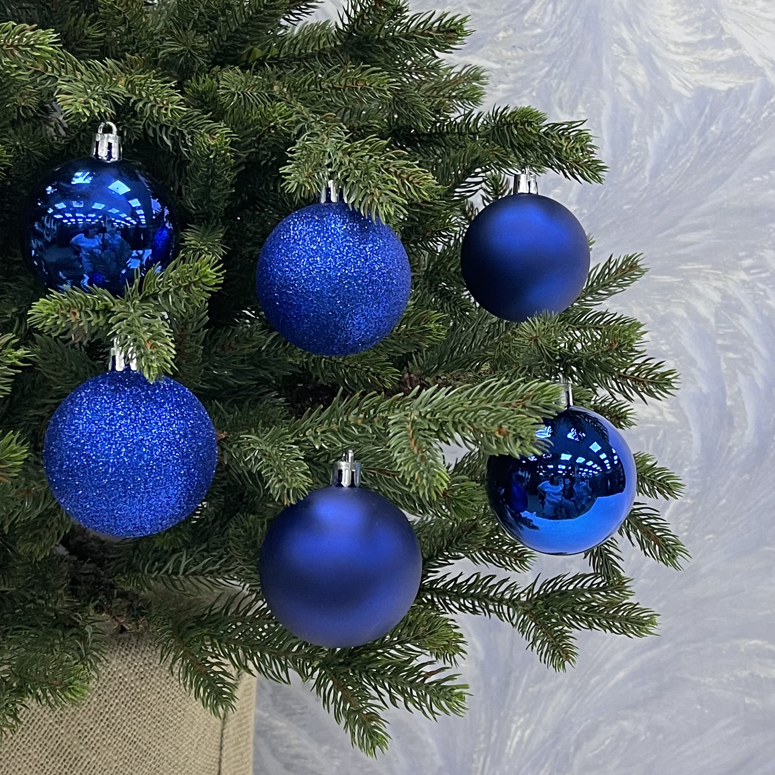Декор новогодний, ёлочные украшения, набор пластиковых шаров 30 штук диаметр 6 см, синий, прозрачный короб.