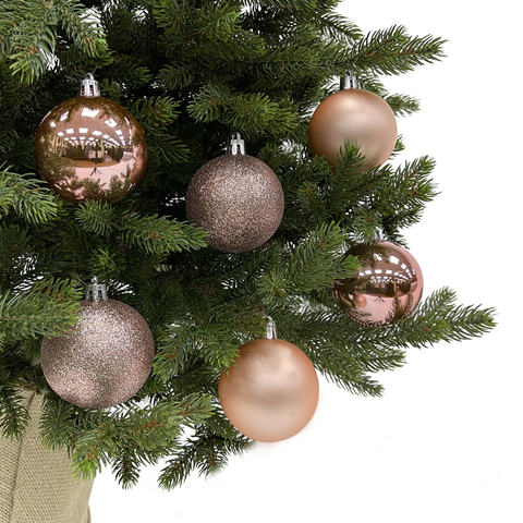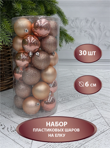 Декор новогодний, ёлочные украшения, набор пластиковых шаров 30 штук диаметр 6 см, светло-розовый, прозрачный короб.