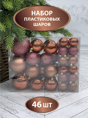 Декор новогодний, ёлочные украшения, набор пластиковых шаров 46 штук диаметр 8-4 см,розовый щербет, прозрачный короб.