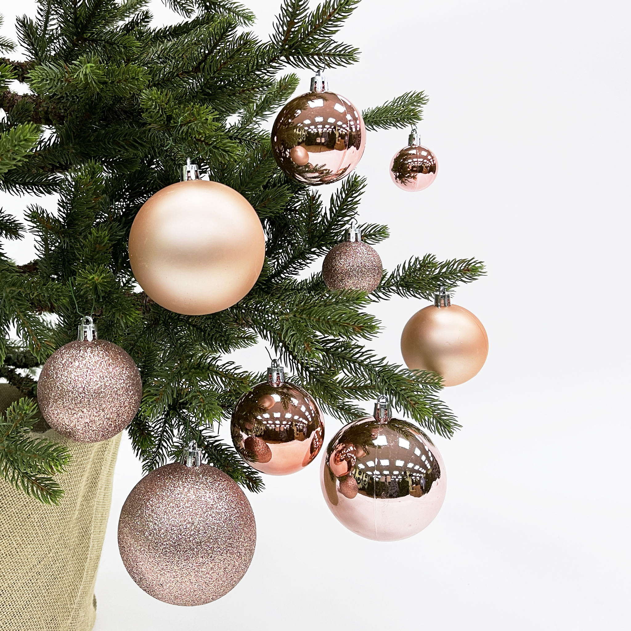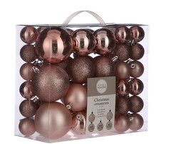 Декор новогодний, ёлочные украшения, набор пластиковых шаров 46 штук диаметр 8-4 см,светло-розовый, прозрачный короб.