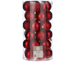 Декор новогодний, ёлочные украшения, набор пластиковых шаров 25 штуки диаметр 8 см, цвет - красный, прозрачный короб.