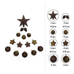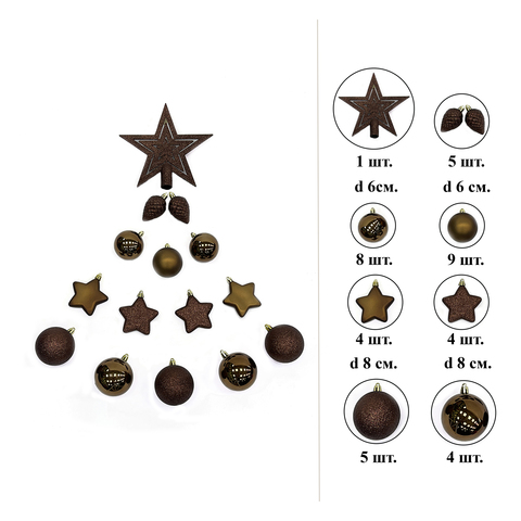 Декор набор шаров с верхушкой 40 штук, коричневый