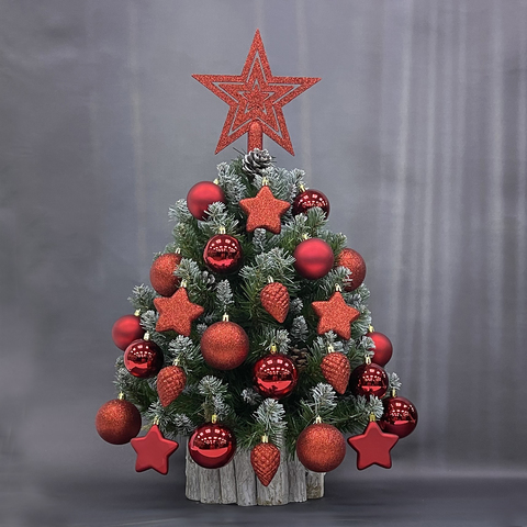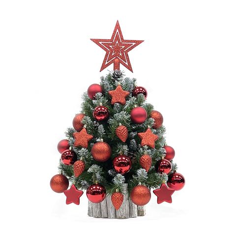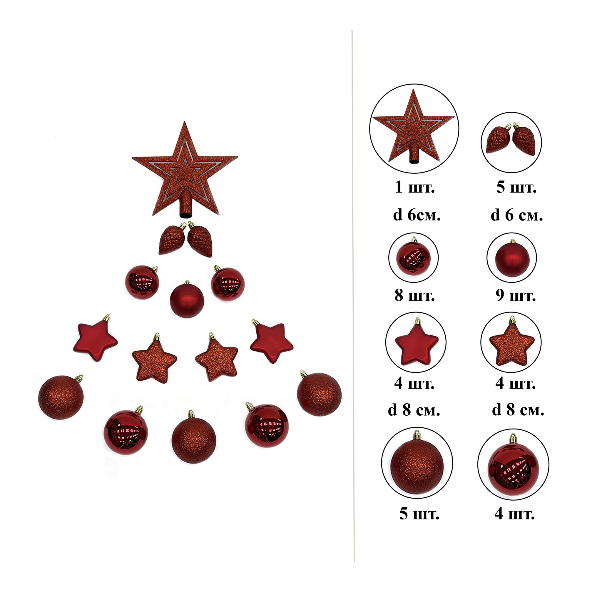 Декор новогодний, ёлочные украшения, набор с верхушкой в виде звезды состоит из шаров, звезд, шишек, в наборе 40 штук, красный прозрачный короб.