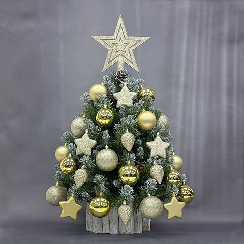 Декор новогодний, ёлочные украшения, набор с верхушкой в виде звезды состоит из шаров, звезд, шишек, в наборе 40 штук, золото прозрачный короб.