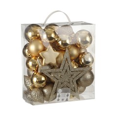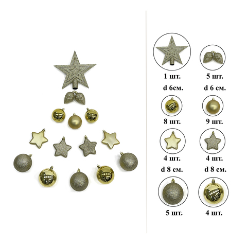 Декор набор шаров с верхушкой 40 штук, золото