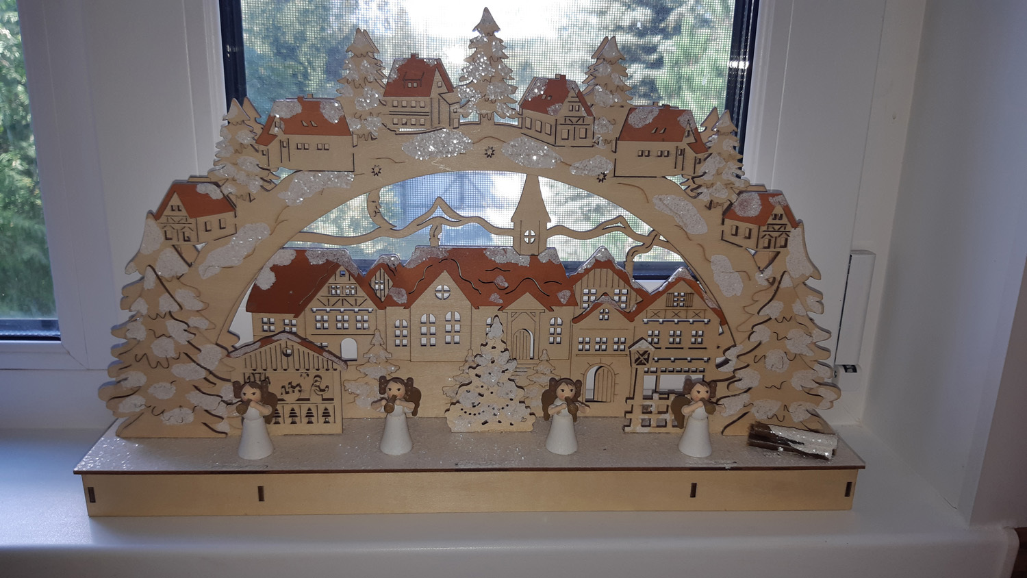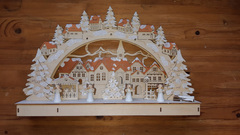 Новогодний декор с подсветкой-светильник декоративный "РОЖДЕСТВЕНСКИЙ ГОРОДОК" выполнен в традиционном немецком стиле выполнена с применением резки и выжигания лазером,благодаря чему удается достичь идеальной проработки мелких деталей. Ручная окраска, выс/дл. 28х45,5 см, 11 LED ламп.