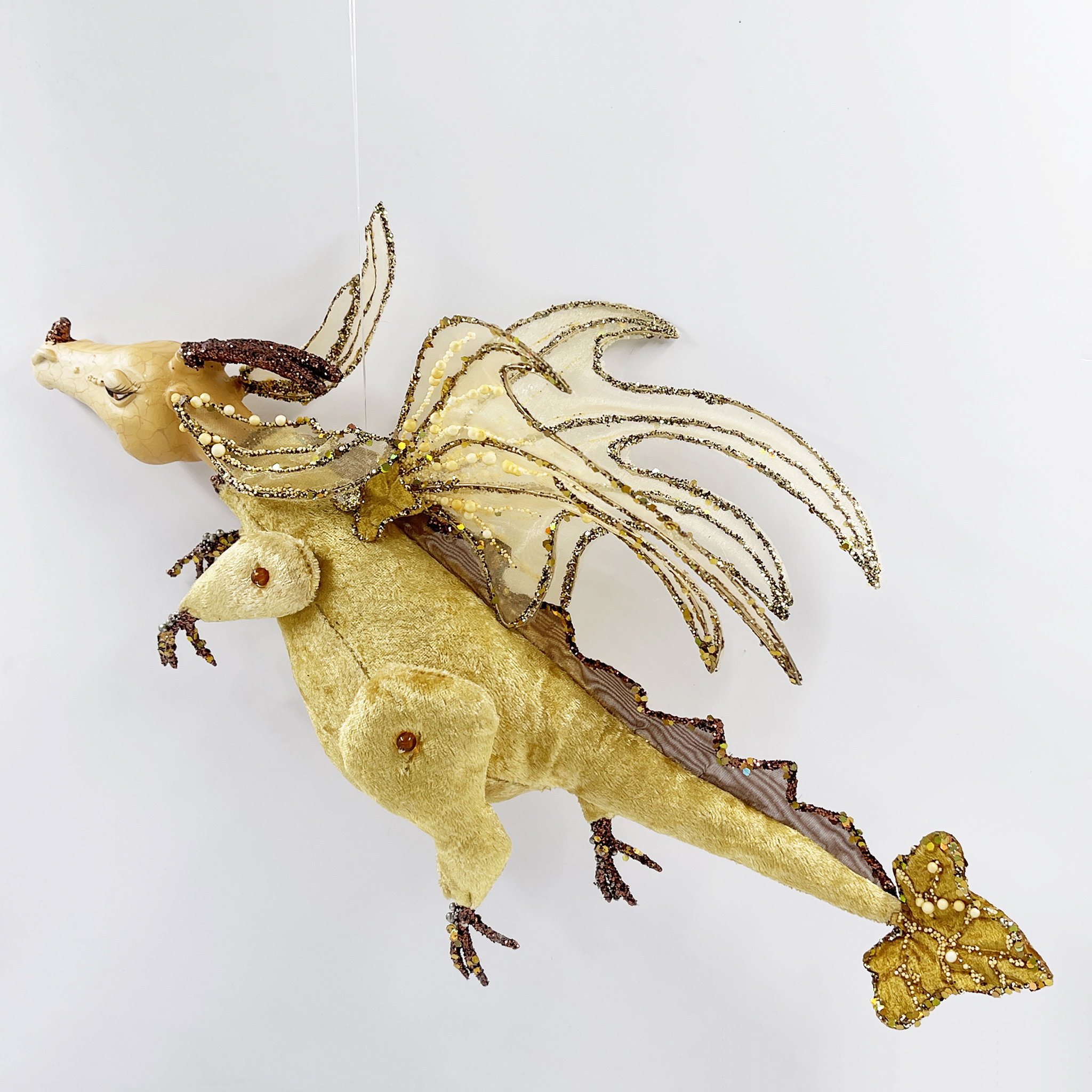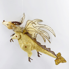Очень красивая новогодняя елочная игрушка символ года Дракон золото 38х28 см из полиэстер.