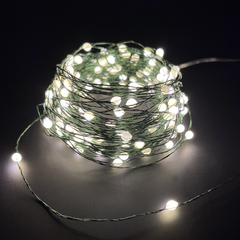 Гирлянда электрическая нить светодиодная "Роса" 100 теплых белых мини-LED огней на зеленом проводе 10м