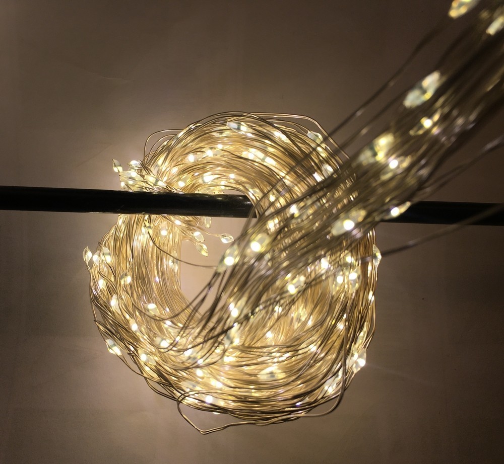Новогодняя гирлянда электрическая нить светодиодная "Млечный путь" 80 теплых белых мини-LED огней, серебряный провод, c адаптером, 8 м+3 м кабель, класс защиты IP 44, подходит для многофункционального использования