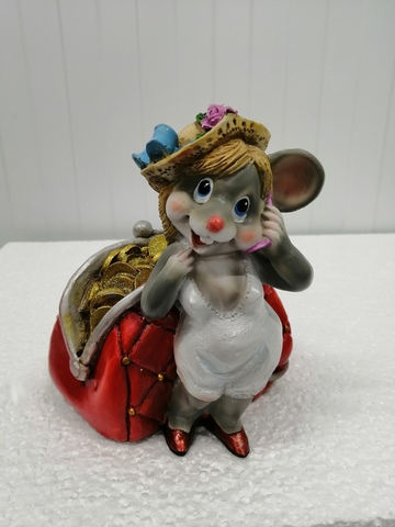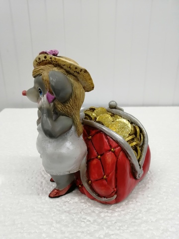 Новогодний декор , изделие декоративное копилка "Мышка с кошельком" L13 W16 H18 см , материал изготовления полистоун. Производство Россия.