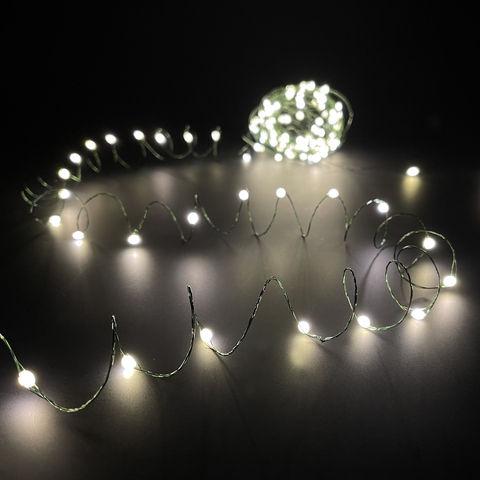 Название модели | Роса 150 теплых белых led огней на зеленом проводе 15 м |