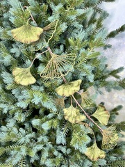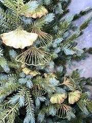 Очень красивое новогоднее елочное украшение Гирлянда гинго оливковая 145см , полиэстер.