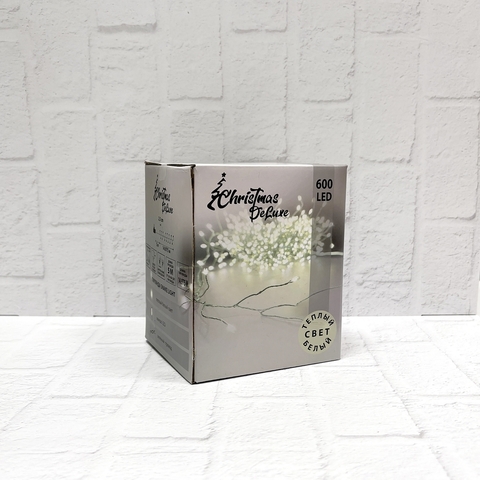 Особенностью данной гирлянды является использование 600 микроламп теплого белого цвета. Это обеспечивает мягкое и приятное освещение, которое создает уютную и теплую атмосферу.