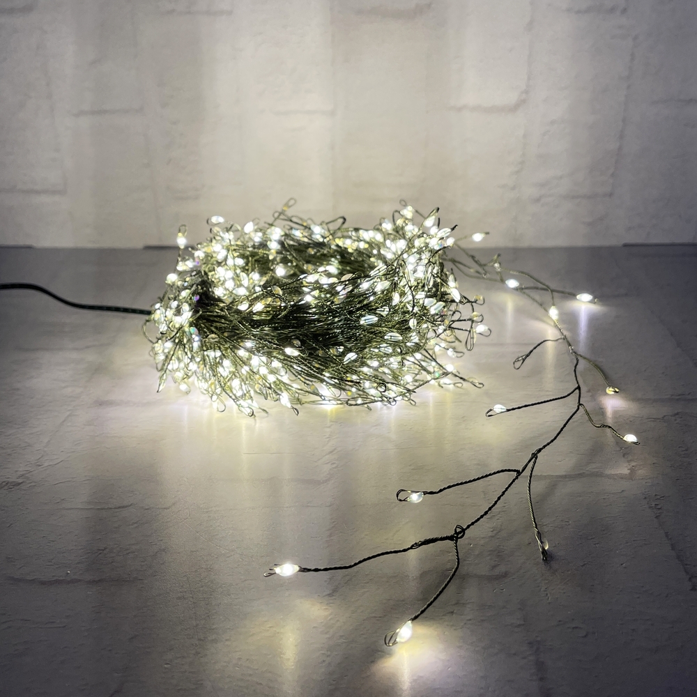 Гирлянда светодиодная "Капельки" 600 светодиодных микроламп теплого белого цвета, 15 м зеленого провода, контролер 8 функций