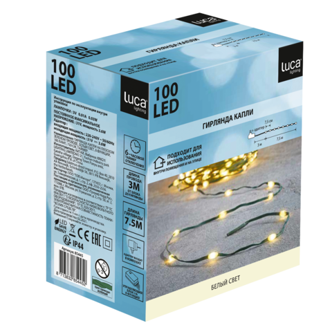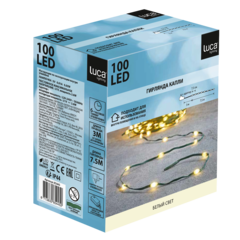 - Гирлянда светодиодная "Капли" 100 ламп белого цвета, на плоском зеленом проводе 7,5 м, контролер, таймер