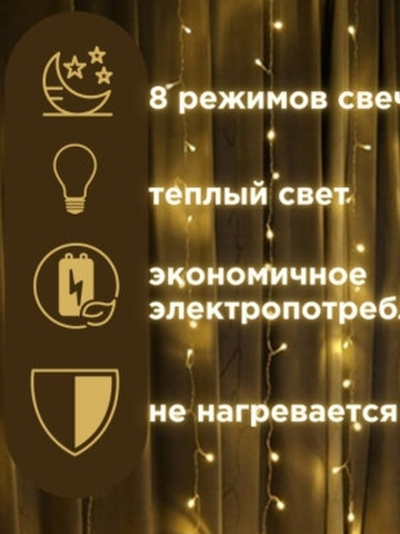 Гирлянда-занавес светодиодная 3х2м, свечение теплое белое 320 led, 8 режимов