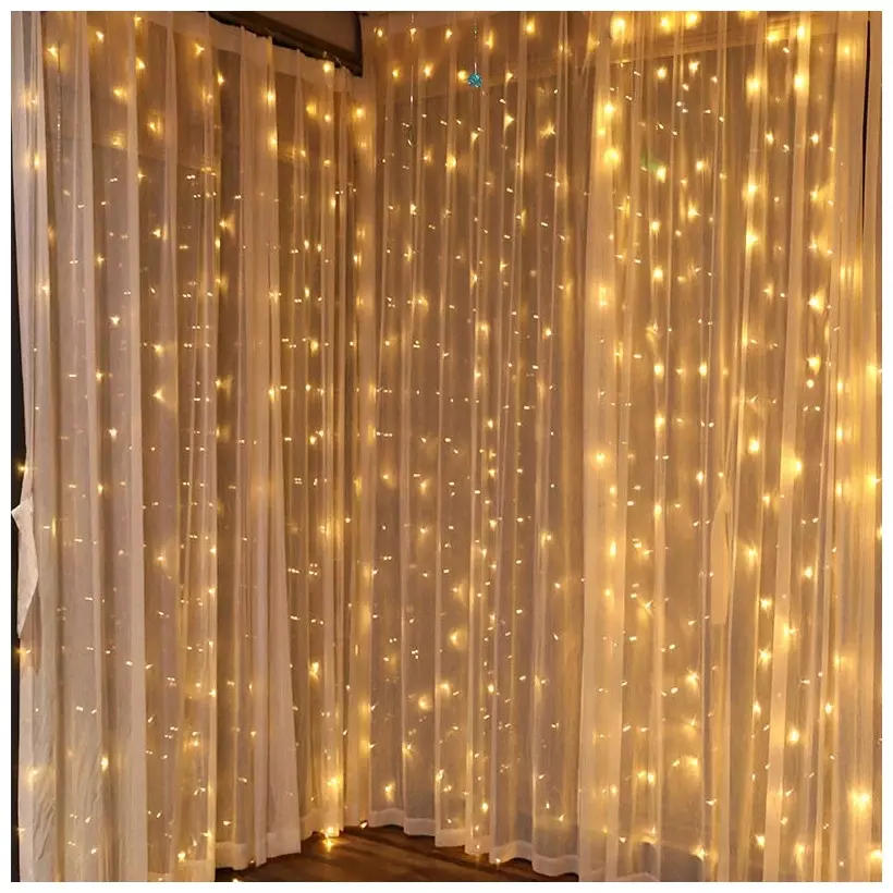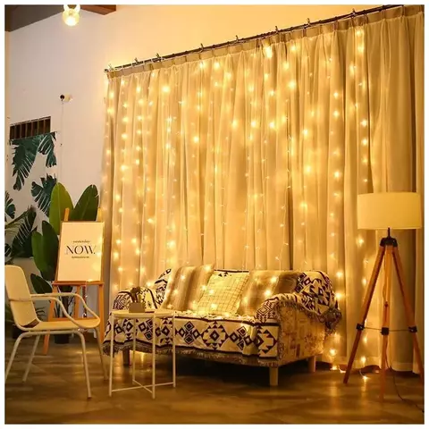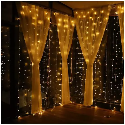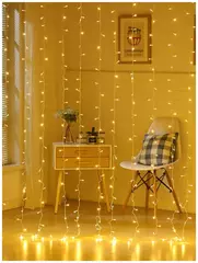 Гирлянда-занавес светодиодная 3х3м, свечение теплое белое , 8 режимов.