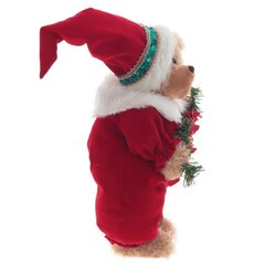 Забавный медвежонок в ярких тканях: это подарок мечты! Платье из гобелена, колпак с мехом и стильные сапоги создают незабываемый образ. Гибкость лапкам придаёт скрытая проволока. Этот восхитительный зверёк украсит любой дом.
