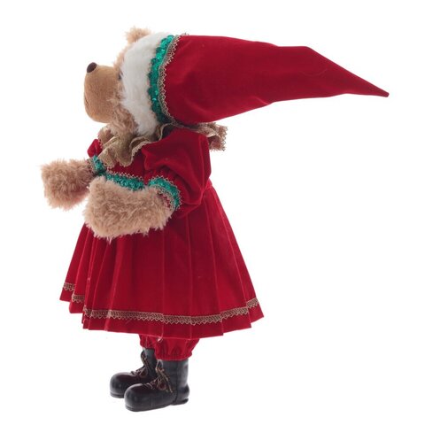 Забавный медвежонок в ярких тканях: это подарок мечты! Платье из гобелена, колпак с мехом и стильные сапоги создают незабываемый образ. Гибкость лапкам придаёт скрытая проволока. Этот восхитительный зверёк украсит любой дом.