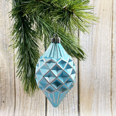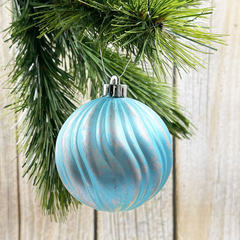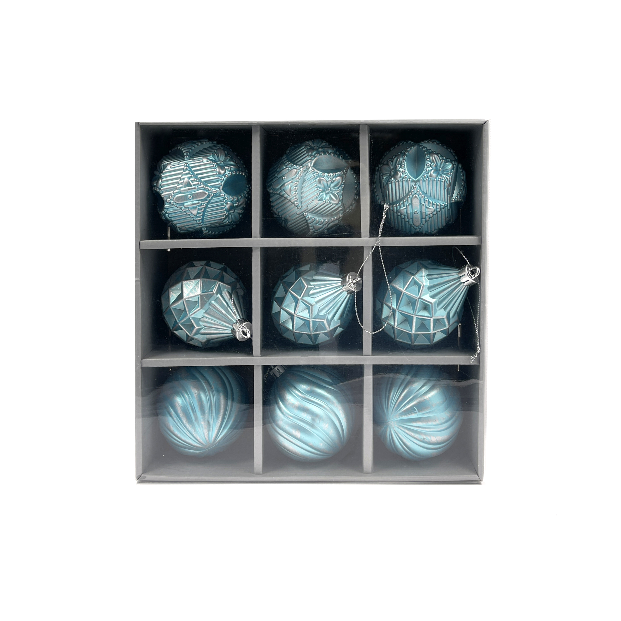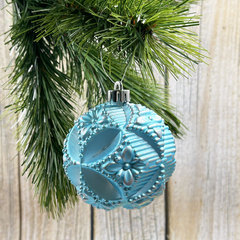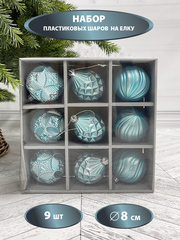 Набор елочных украшений из пластика голубой с серебряной патиной под плексом, 9 шту