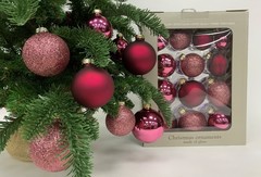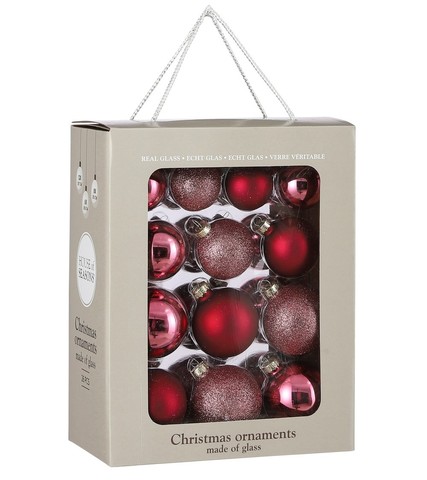 Декор новогодний, ёлочные украшения из стекла, набор 26 штук диаметр 5-7 см, цвет-ягодный смузи.