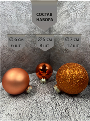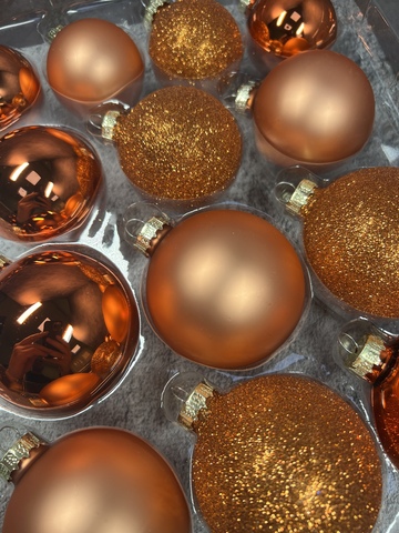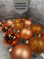 Декор новогодний, ёлочные украшения из стекла, набор 26 штук диаметр 5-7 см, цвет-оранжевый.