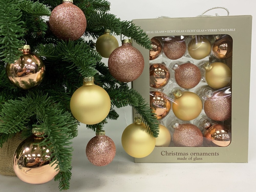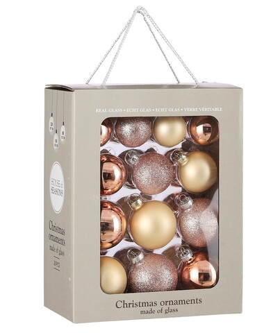 Набор шаров из стекла, 26 шт, цвет розовое шампанское.