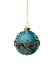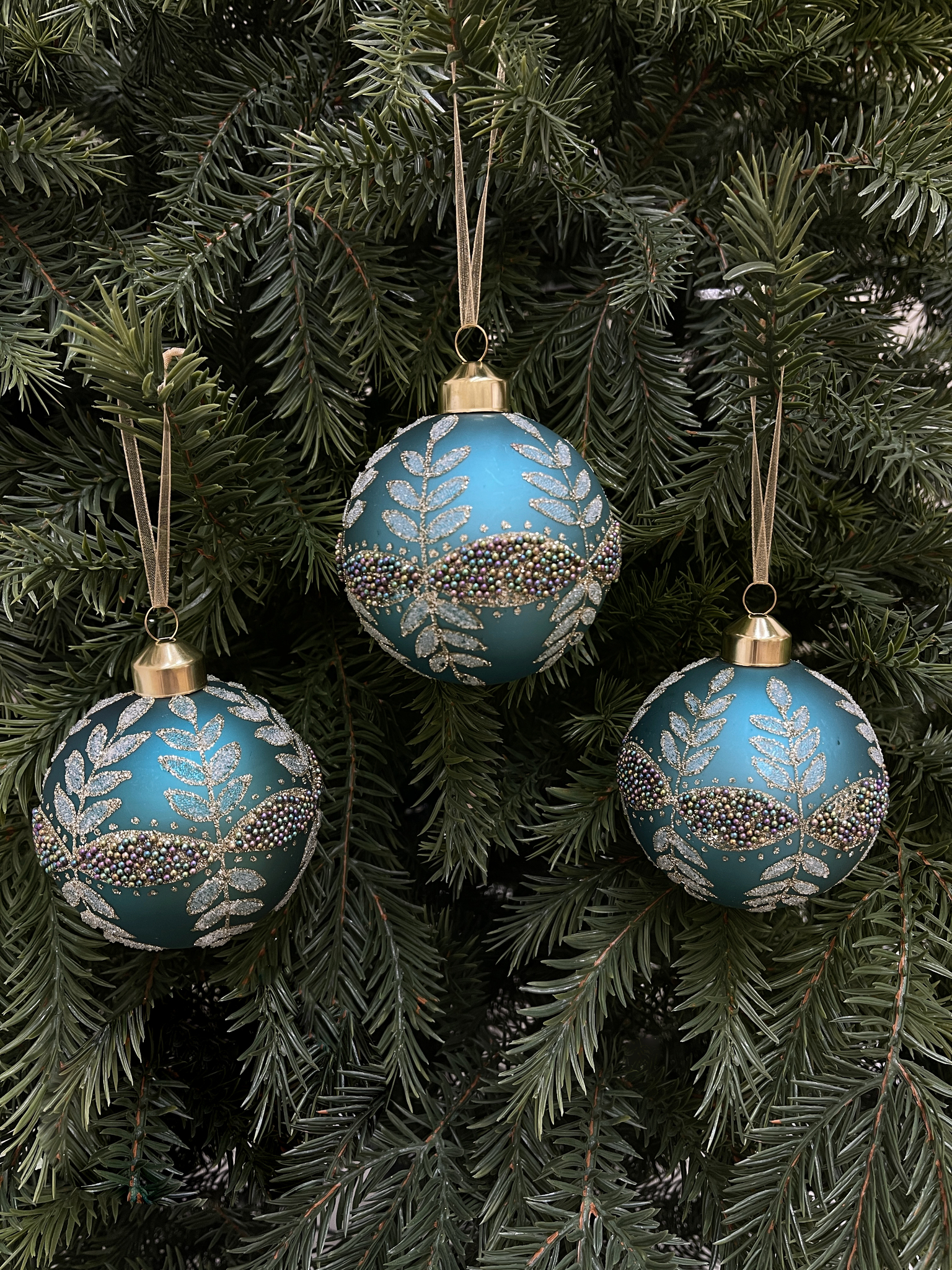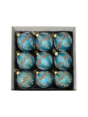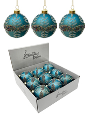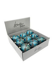 Набор стеклянных игрушек голубой с узором и стразами внутри д.8 см, 9 штук