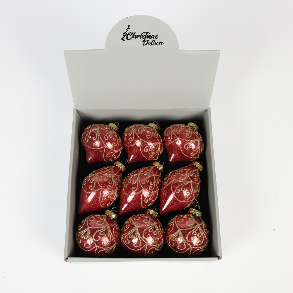 Этот роскошный комплект новогодней игрушки из стекла от бренда ChristmasDeLuxe станет изысканным украшением вашей праздничной ёлки! Стильные оттенки красного стекла, с золотыми вензелями на поверхности – он придаст торжественность и очарование вашему празднику. Качественное фабричное производство обеспечивает долговечность изделий, а разнообразие форм создаёт гармоничную композицию. Идеально подойдёт как для домашнего уюта, так и для эффектного декора общественных пространств. Красивый новогодний набор из стекла красного цвета с узором д8 см 9 штук: шар, элипс, луковка.