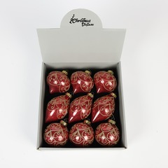 Набор стеклянных игрушек красный с золотым узором и стразами внутри д.8 см, 9 штук