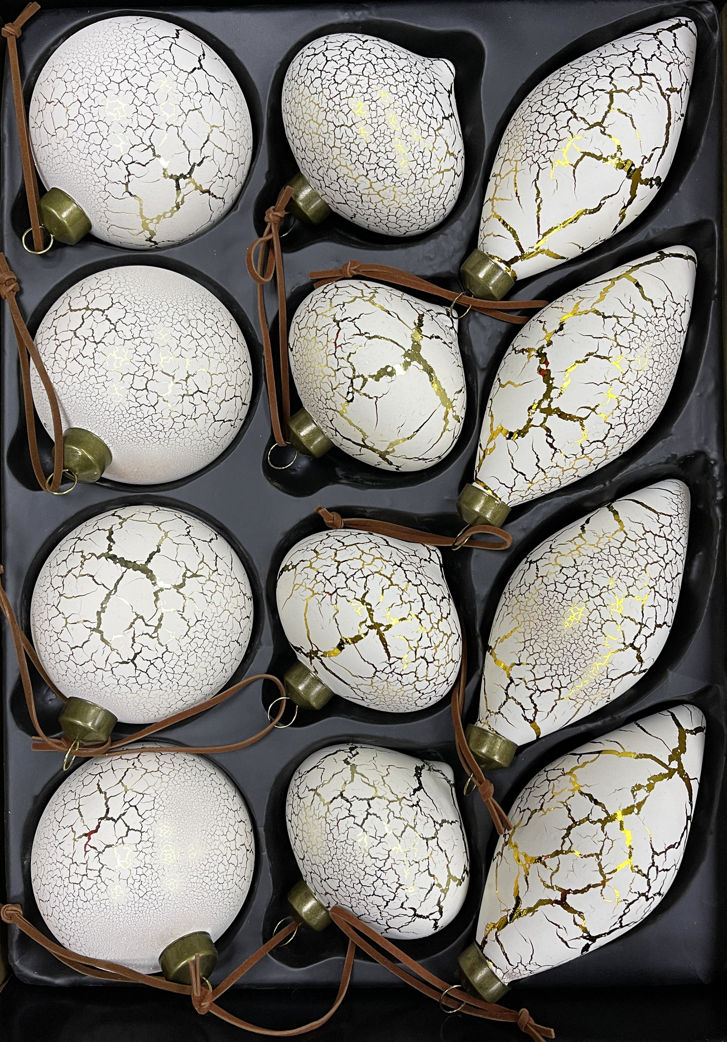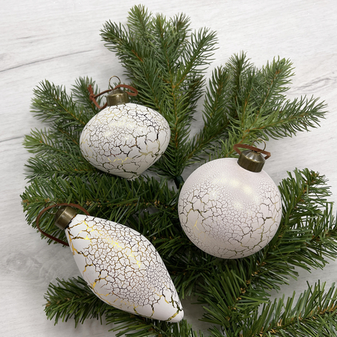 Новогодний декор, набор стеклянных елочных шаров диаметр 8 см, 12 штук, ассортимент из 3, цвет кремовый с кракле.