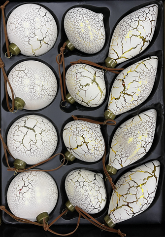 Набор стеклянных шаров кремовый с кракле д.8 см, 12 штук, ассортимент из 3-х видов.