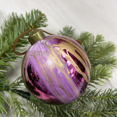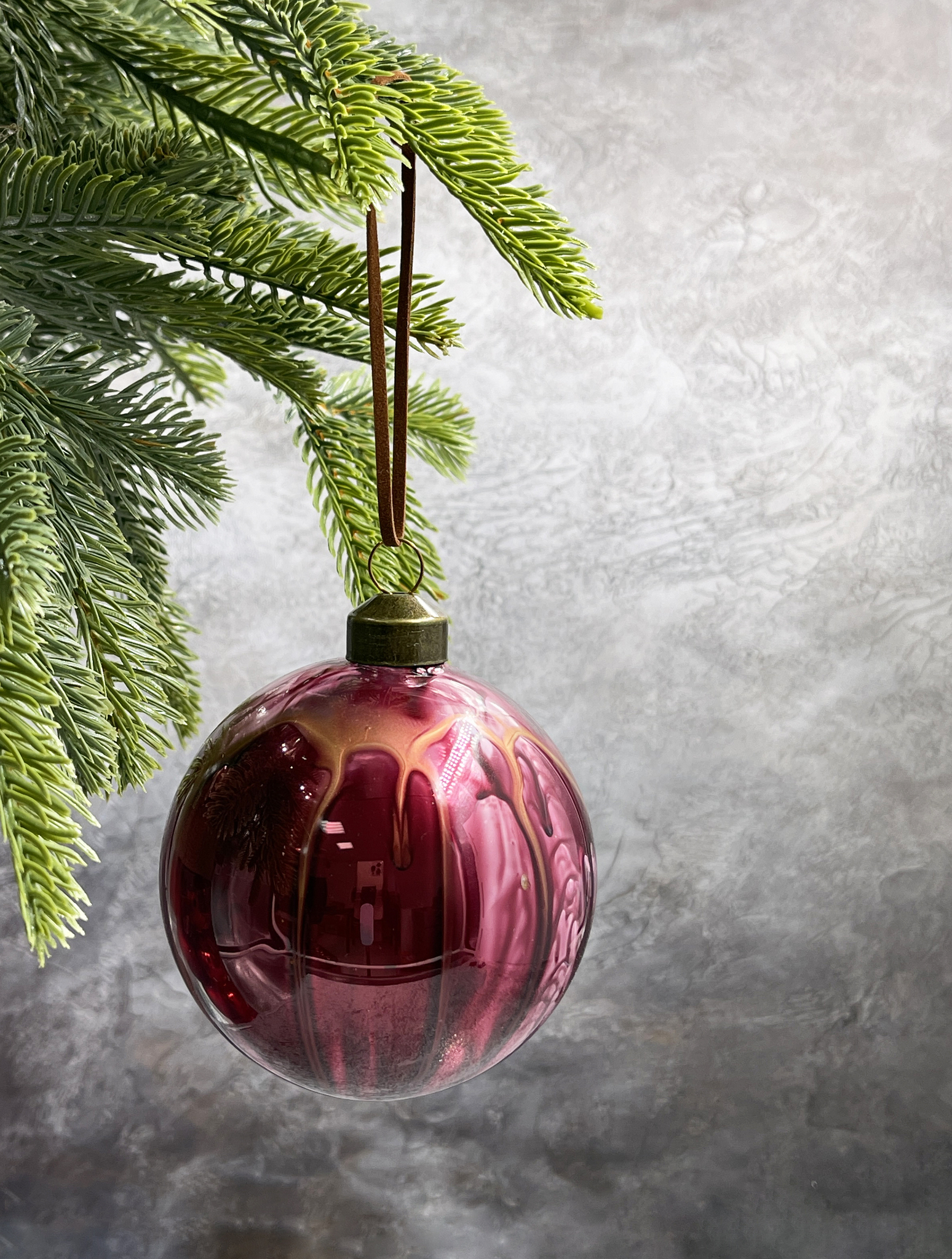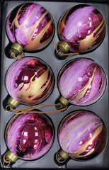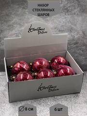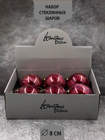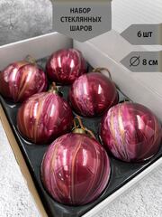 Набор стеклянных шаров малиновый с разводами д.8 см, 6 штук