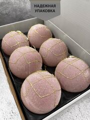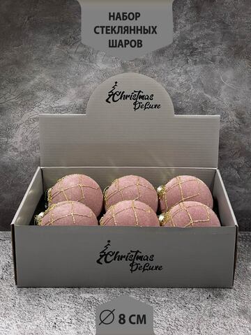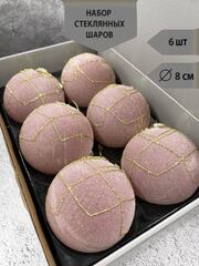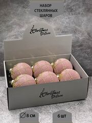 Набор стеклянных шаров пудровый с бусинками д.8 см, 6 штук