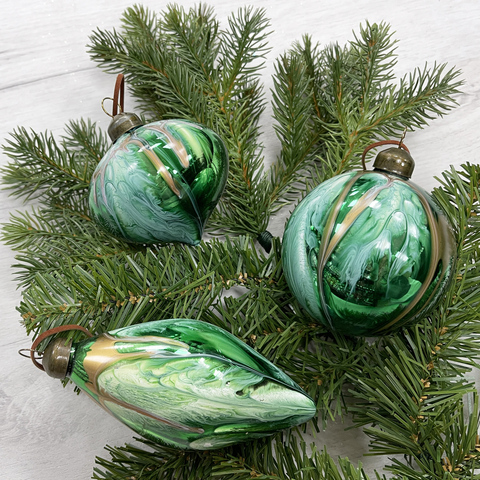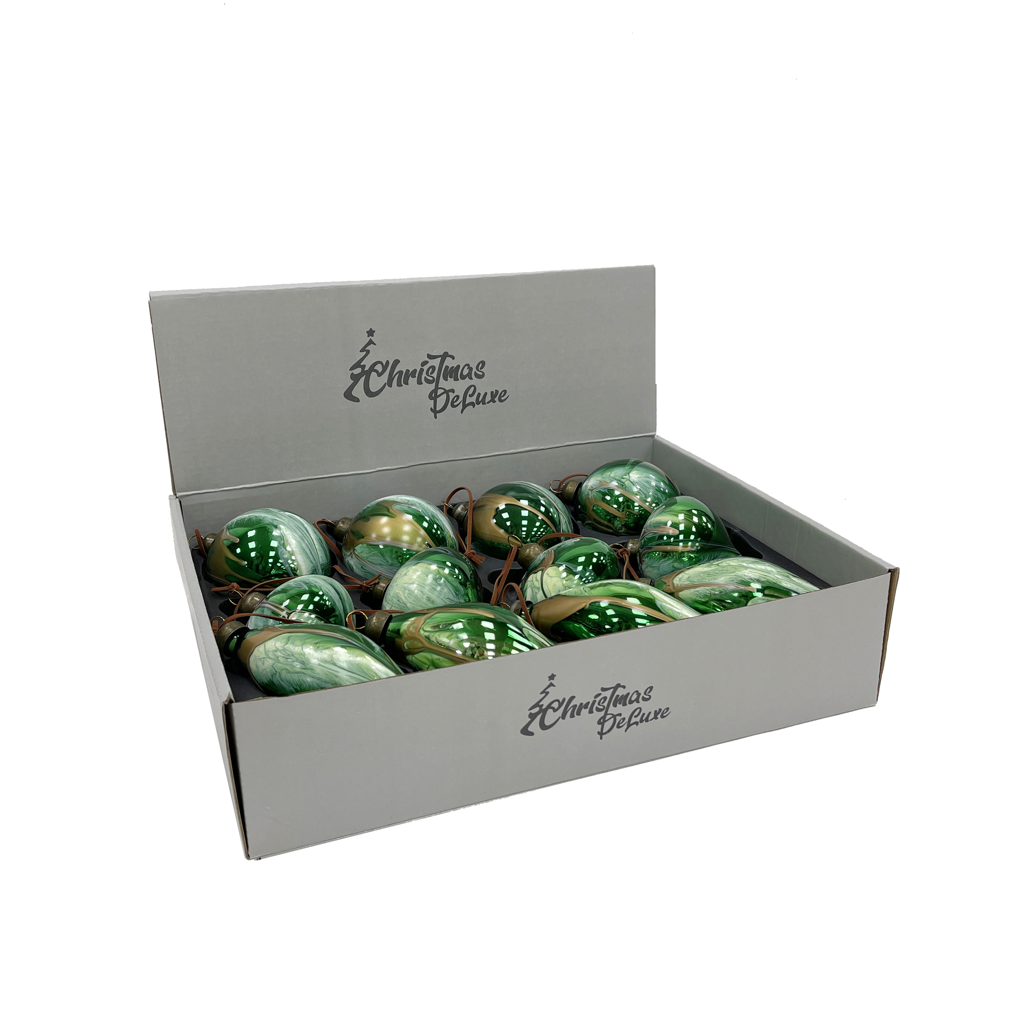 Новогодний декор, набор стеклянных елочных шаров диаметр 8 см, 12 штук, ассортимент из 3, цвет зеленый с разводами.