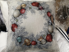 Подушка гобеленовая новогодняя Венок с шарами 44х44, гобелен