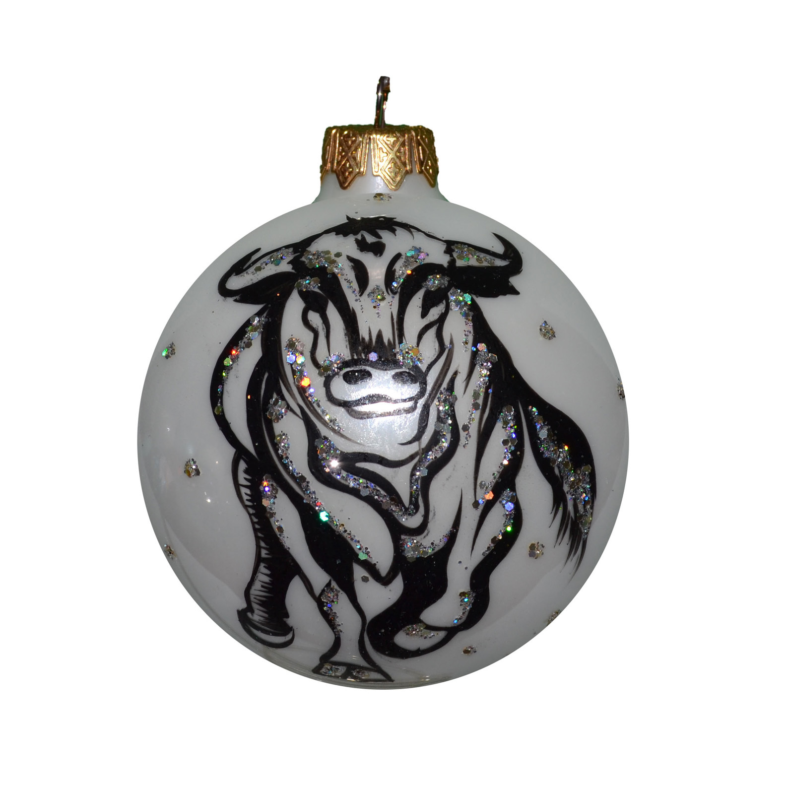 Новогоднее елочное украшение из стекла с ручной росписью Шар "Буйвол 4" 80мм, в подарочной упаковке . Классическая новогодняя игрушка на елку будет актуальным подарком на новый год как для ребенка, так и для взрослого! Украшения на елку в виде шара с ручной росписью всегда было бестселлером среди новогодних украшений!
