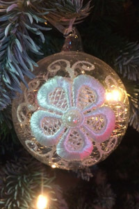 Елочное украшение из стекла "Шар прозрачный с кружевом", д. 8 см