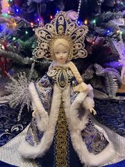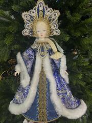 Снегурочка в синей с золотом шубке, 45 см, ручная работа