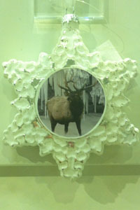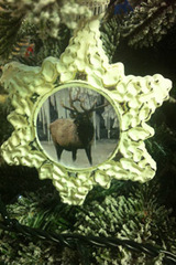 Новогоднеее елочное украшение "Снежинка" c оленями, 10 см, стекло.