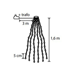 Светодиодная уличная электрогирлянда хвост Luca lighting с 256 теплыми белыми LED огнями, зеленый провод провод 8 нитей, длина каждой нити 160 см, таймером на отключение 6/18 часов, контролером на 8 функций, IP44, длина подводящего провода до розетки 3м.
