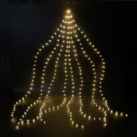 Новейшая сверхнадёжная светодиодная новогодняя электрогирлянда хвост с 480 теплыми белыми LED огнями, зеленый провод провод 12 лучей, длина каждой нити 200 см, таймером на отключение 6/18 часов, контролером на 8 функций, IP 44-расчитана для улицы. Повышенная продолжительность горения. Яркие и долговечные светодиоды надолго подарят вам чувство настоящего праздника!