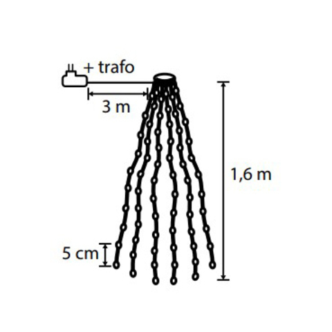 Светодиодная уличная электрогирлянда хвост Luca lighting 480 теплыми белыми LED огнями, зеленый провод провод 12 нитей, длина каждой нити 200 см, таймером на отключение 6/18 часов, контролером на 8 функций, IP44, длина подводящего провода до розетки 3м.
