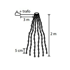 Светодиодная уличная электрогирлянда хвост Luca lighting 480 разноцветными LED огнями, зеленый провод провод 12 нитей, длина каждой нити 200 см, таймером на отключение 6/18 часов, контролером на 8 функций, IP44, длина подводящего провода до розетки 3м.